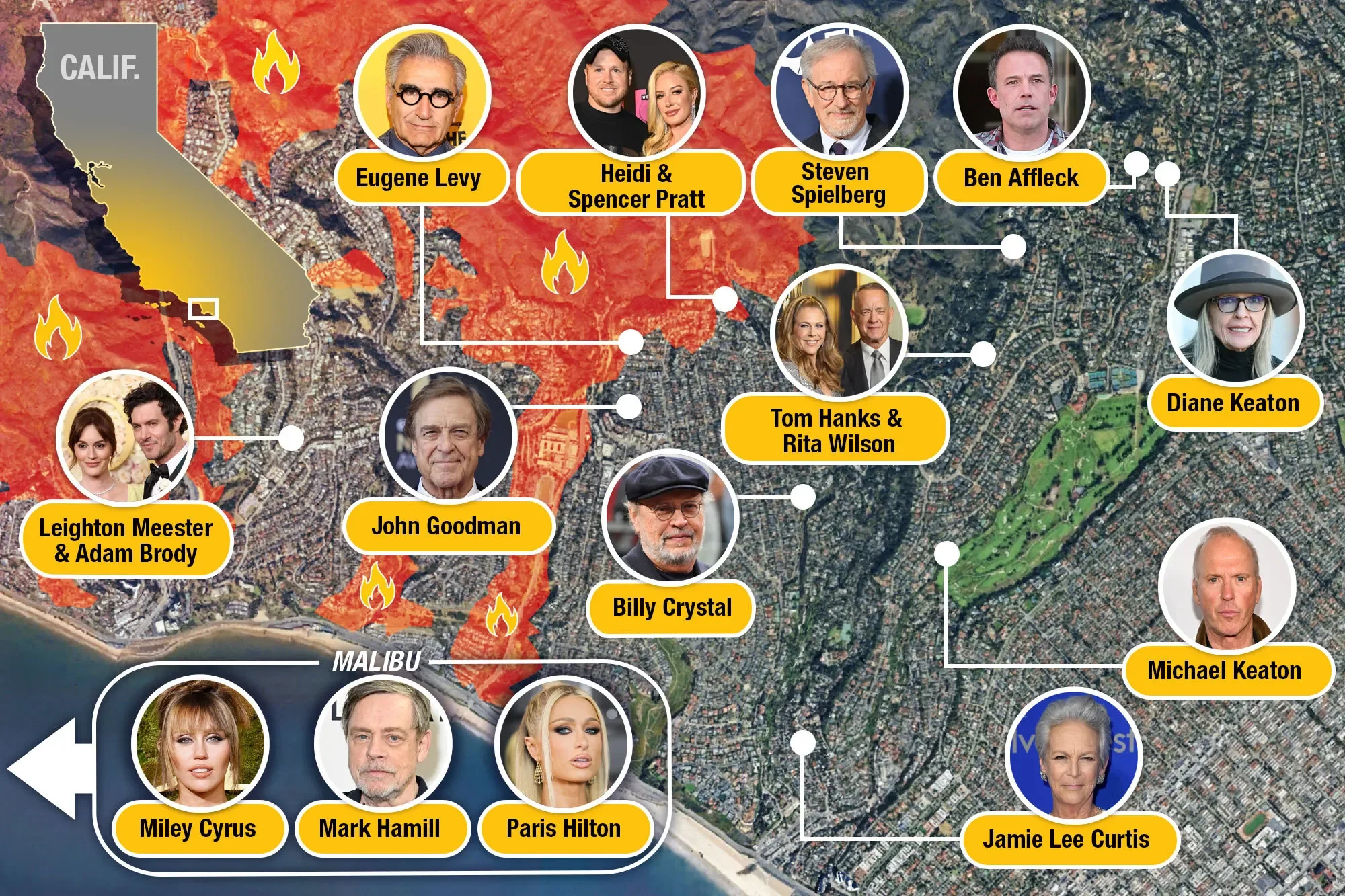 Map of celebrity homes effected by wildfires in Los Angeles
